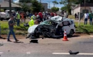 Motorista de carro morreu e três vítimas ficaram feridas em acidente no km 608 da BR-277, em Santa Tereza do Oeste, na manhã desta sexta-feira (16). Segundo informado à reportagem, o caminhão seguia sentido a Foz do Iguaçu e o Chevrolet Spin, de São Luís (Maranhão), trafegava sentido a Curitiba, quando aconteceu a batida frontal. Com a força do impacto, o motor do carro foi arrancado e o veículo de carga parou em uma ribanceira. O carro emplacado no Maranhão mas os ocupantes do Spin são moradores de Garanhuns Pernambuco. Equipe do Corpo…