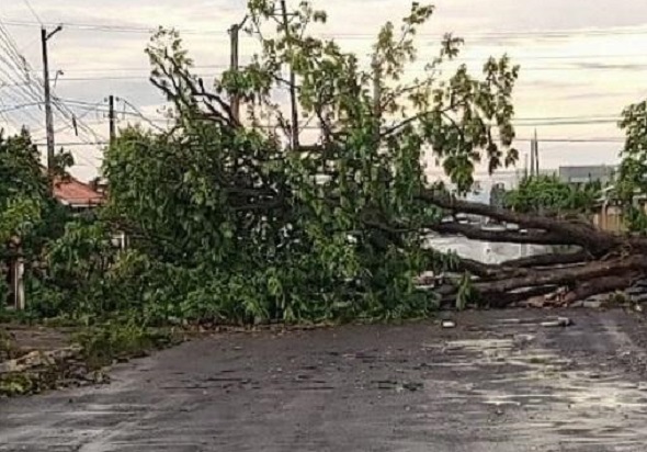 Uma forte rajada de vento acompanhada de chuva atingiu Maripá na tarde de quarta-feira (18) e provocou estragos em diferentes pontos da cidade. Nas proximidades da Prefeitura, uma árvore de grande porte foi arrancada pela força do vento e caiu sobre a rua. Outras árvores também vieram abaixo durante o temporal. Além disso, uma residência foi destelhada, embora o endereço não tenha sido confirmado. Parte de um portão de ferro também caiu devido à intensidade das rajadas. Apesar dos danos materiais, não há registro de pessoas feridas ou de prejuízos…