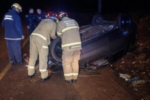 Equipes do Serviço de Atendimento Móvel de Urgência (SAMU) e do Corpo de Bombeiros do Paraná foram acionadas na noite de sábado (21) para atender vítimas de um capotamento na BR-163, no trecho que liga Quatro Pontes a Marechal Cândido Rondon. O acidente envolveu uma caminhonete conduzida por um homem ainda não identificado. Com o capotamento, duas pessoas ficaram feridas. O motorista sofreu ferimentos graves e precisou de atendimento imediato das equipes de resgate. O passageiro teve lesões leves. Ambos foram encaminhados para a UPA de Marechal Cândido Rondon para…