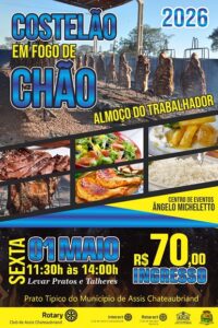 Evento com Costão em Fogo de Chão acontece no dia 1º de maio no Centro de Eventos Angelo Micheletto e promete confraternização especial para toda a família. Em comemoração ao Dia do Trabalhador, o Rotary Club de Assis Chateaubriand realiza no próximo dia 1º de maio uma edição especial do tradicional “Costelão em Fogo de Chão”. Batizado de “Costelão do Trabalhador”, o evento será realizado no Centro de Eventos e tem como objetivo principal proporcionar um momento de lazer, confraternização e valorização da amizade entre os trabalhadores da região e…