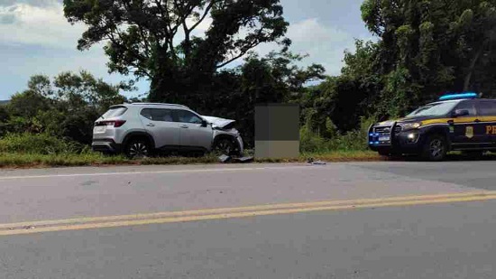 O motorista do caminhão tentou desviar para evitar o impacto frontal, mas o automóvel atingiu a lateral da carreta, arrancando o tanque de combustível e colidindo com o rodado do caminhão.