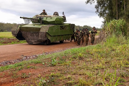 Tanque da força adversária durante exercício militar dos EUA em Kahuku, Havaí Duke Edwards via DVIDS