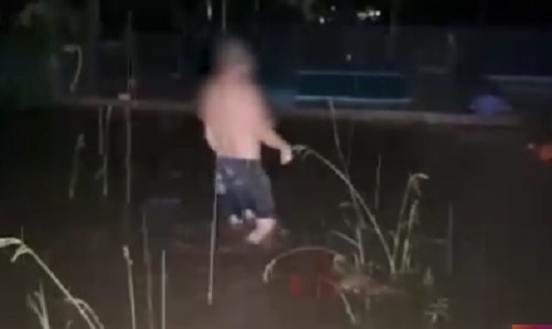 O quintal de uma casa foi tomado pela água após o temporal em Cascavel, na noite desta segunda-feira (1º). O morador do imóvel recebeu a equipe de reportagem do Catve.com, que conduziu até o quintal que fica na parte de trás da casa, que fica na rua Belo Horizonte. Onde fica o gramado encheu com a chuva, e a prova disso é a água bater nos joelhos do homem.