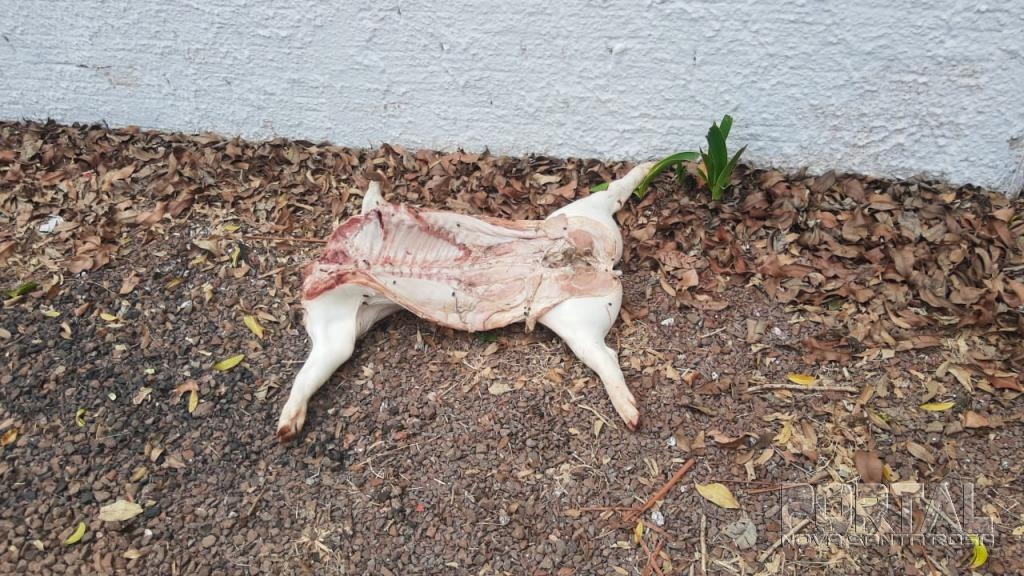 A Guarda Municipal foi acionada após a informação de que pessoas estariam transportando animais mortos. No local, três indivíduos foram abordados enquanto levavam dois leitões sem cabeça e sem a barrigada.