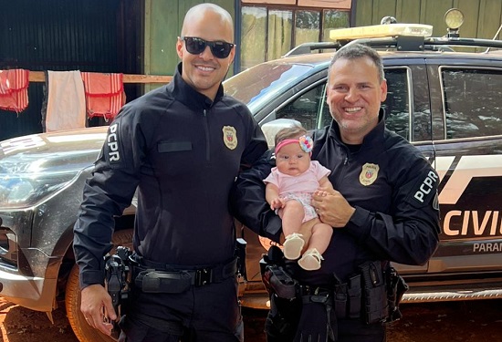 A Polícia Civil do Paraná (PCPR), por meio da Divisão Estadual de Narcóticos (DENARC), núcleo de Foz do Iguaçu, atendeu, na sexta-feira, uma ocorrência durante o deslocamento de parte da equipe que atuava em uma apreensão de drogas realizada em área rural do município de Itaipulândia. No momento em que os policiais se dirigiam para buscar uma carretinha destinada ao transporte do entorpecente apreendido, foram abordados em via pública por um homem que parou seu veículo particular e solicitou auxílio, informando que sua filha, Lorena, de dois meses de idade,…