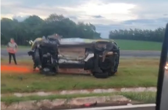 Após a batida, o motorista do carro fugiu sem prestar socorro. A força do impacto espalhou partes do veículo e a placa na via, o que pode ajudar na identificação do condutor.