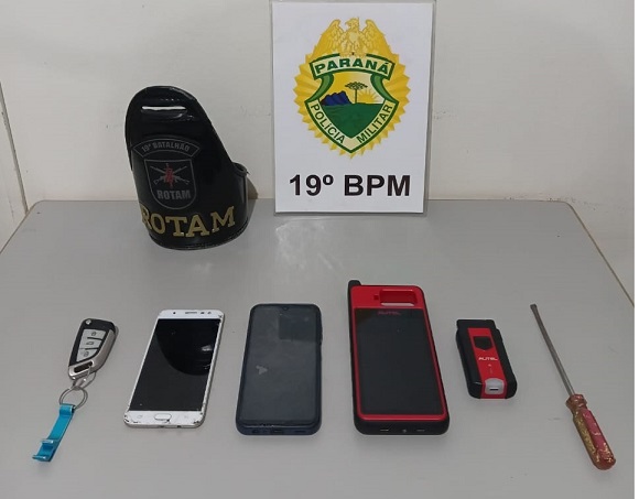 Na sequência, os dois homens se aproximaram da caminhonete e forçaram a porta com um objeto metálico, posteriormente identificado como uma chave de fenda. Após conseguirem acesso ao interior do veículo, a equipe da ROTAM, que já estava nas imediações, realizou a abordagem.